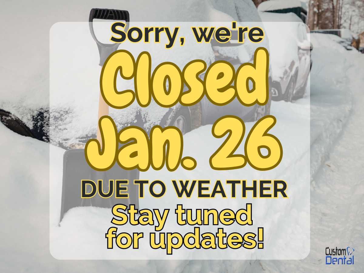 Due to the inclement weather and closed roads, our office will be closed on January 26. Be sure to follow us to see daily updates on when we will reopen. If you have a scheduled appointment for Jan. 26, we'll reach out to reschedule (if we haven't already).